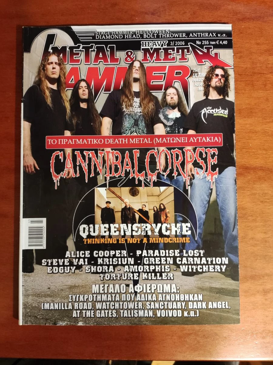 Metal Hammer, τεύχος 256 (4/2006) με συνεντεύξεις από Cannibal Corpse, Queensryche, Amorhis, Paradise Lost, Alice Cooper, Steve Vai etc συν μεγάλο αφιέρωμα σε μπάντες που αγνοήθηκαν (Manilla Road, At The Gates, Voivoid, Talisman, Watchtower, Sanctuary, Dark Angel, etc). Μεταχειρισμένο αλλά σε άριστη κατάσταση, διατηρημένο όπως όταν αγοράστηκε.
