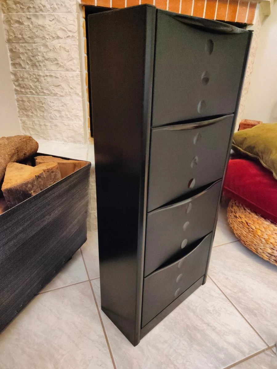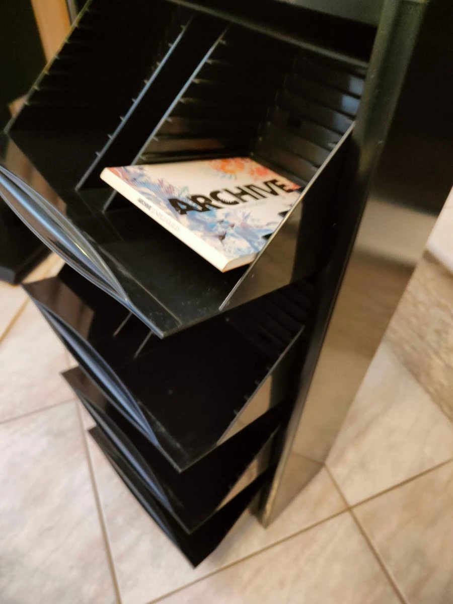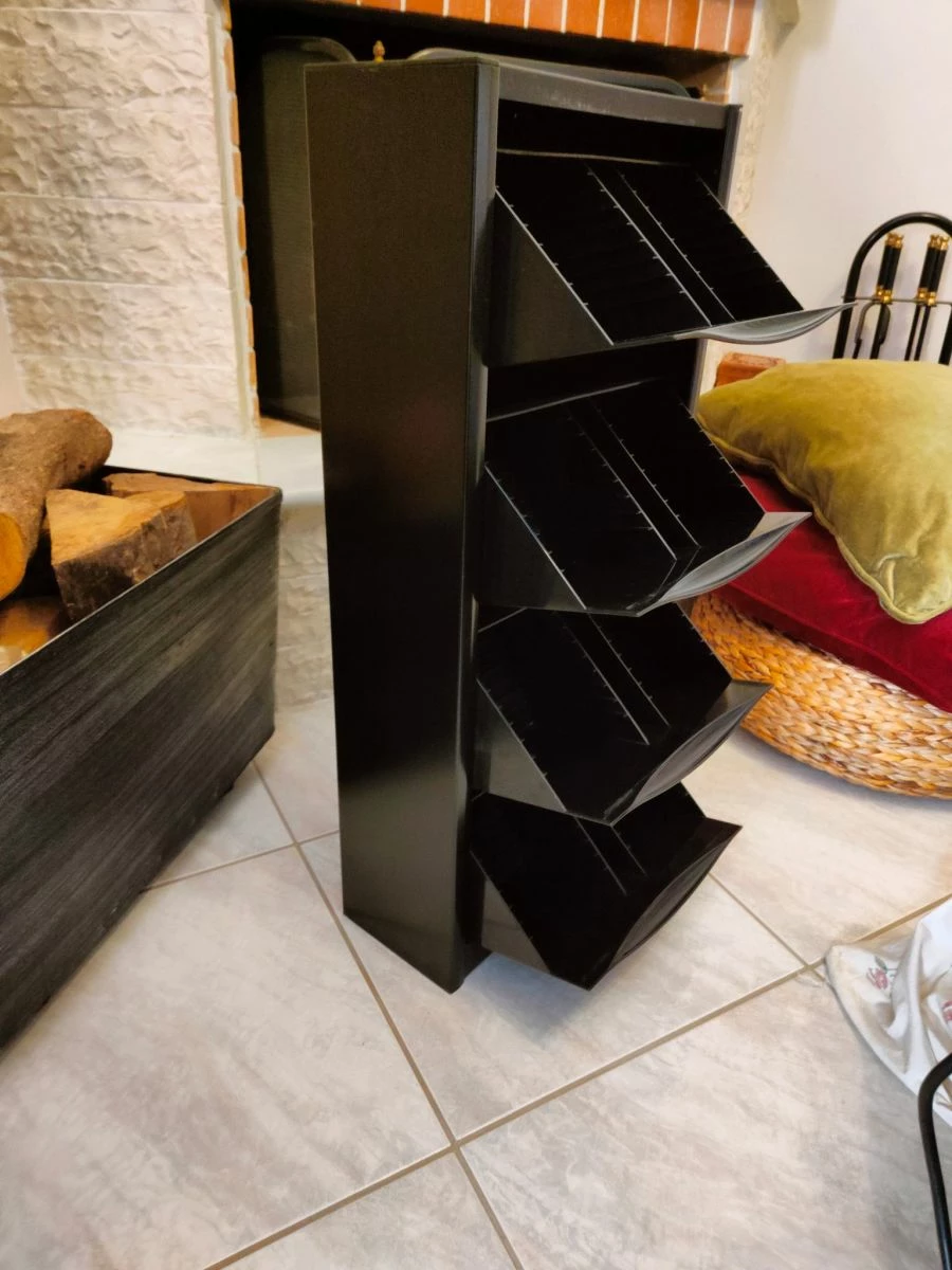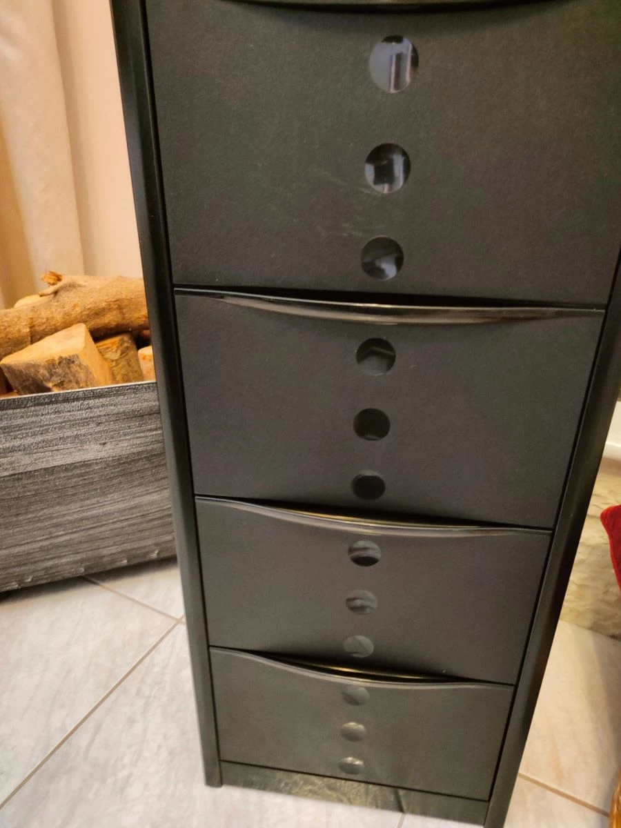Μεταλλική συρταριερα – θήκη CD 80 θέσεων. Μπορεί να μπει και κρεμαστή σε τοίχο. Πολύ καλή κατάσταση