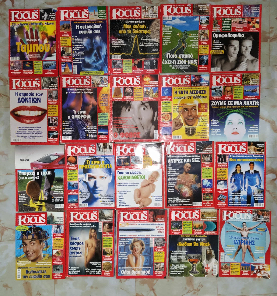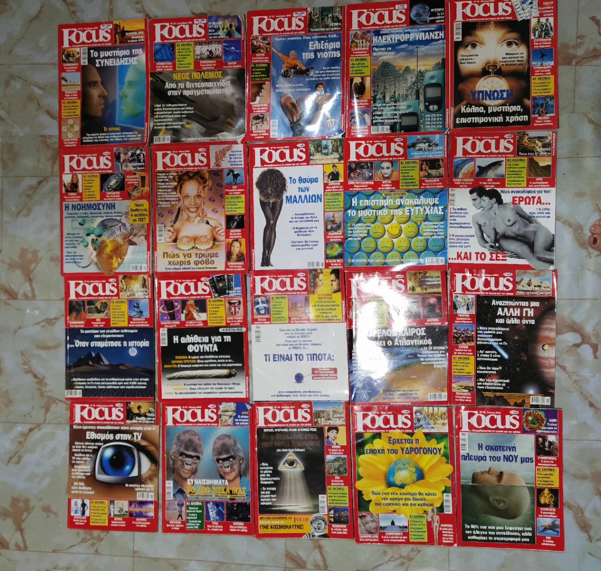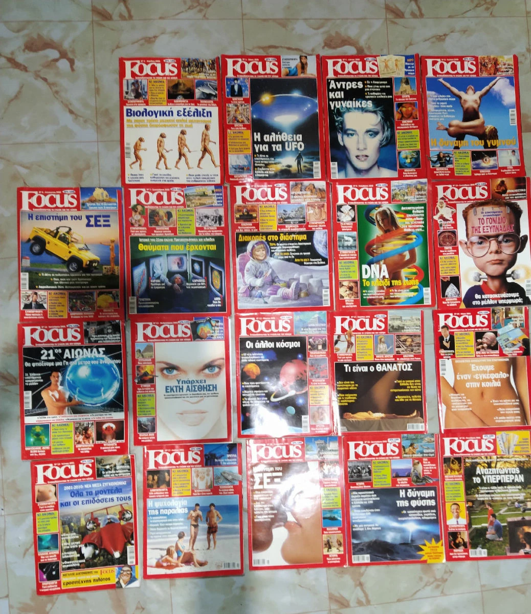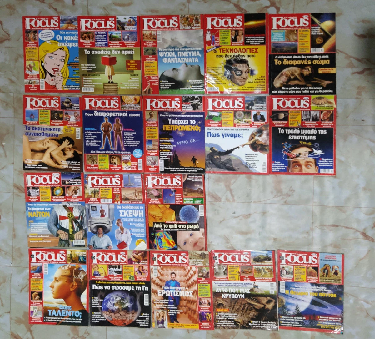 Όλα τα τεύχη του επιστημονικού περιοδικού focus μέχρι το Νο 92.Λείπουν το 2, 74,75 και 91. Τα περισσότερα είναι αδιαβαστα