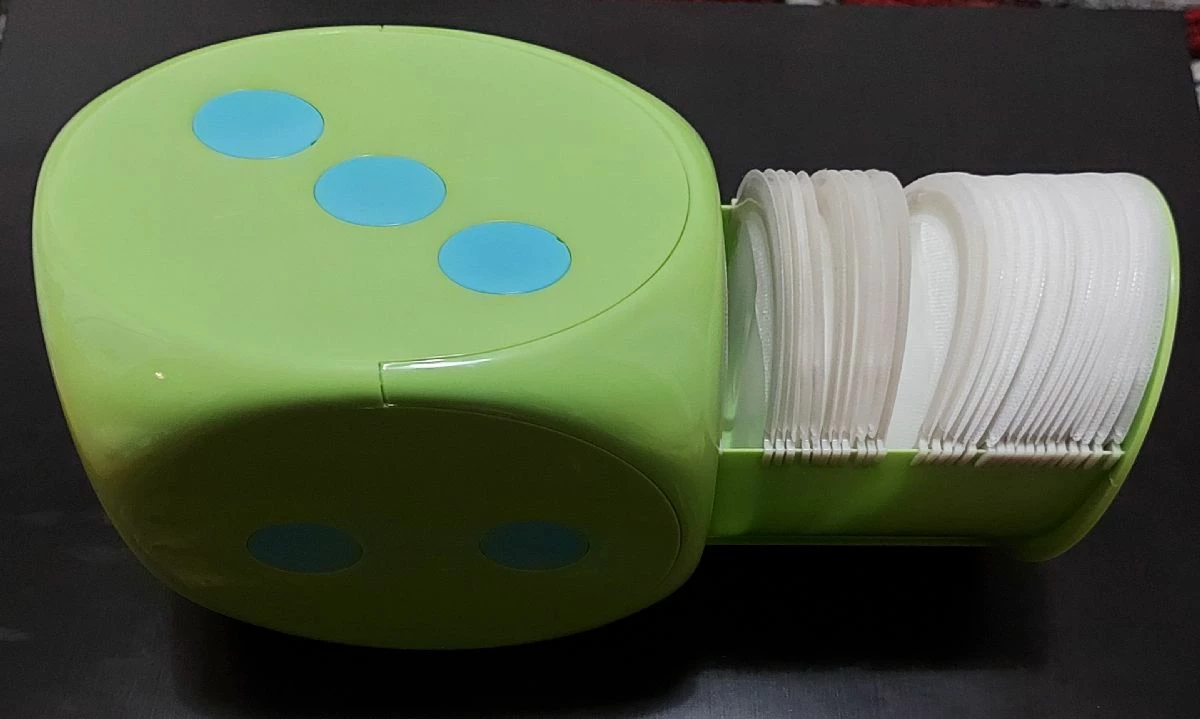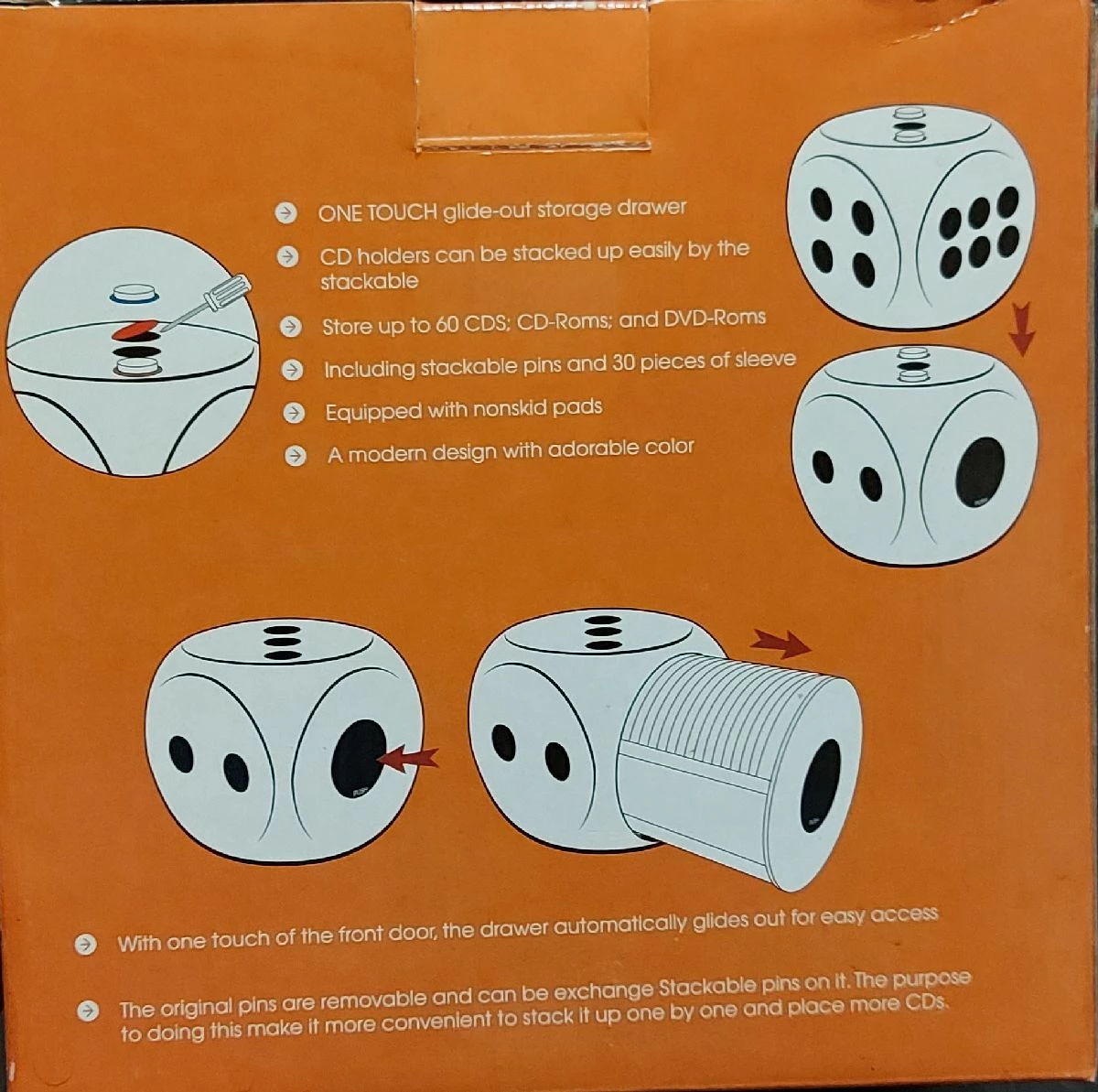 Θήκη για cd σε σχήμα ζαριού, με μηχανικό άνοιγμα.