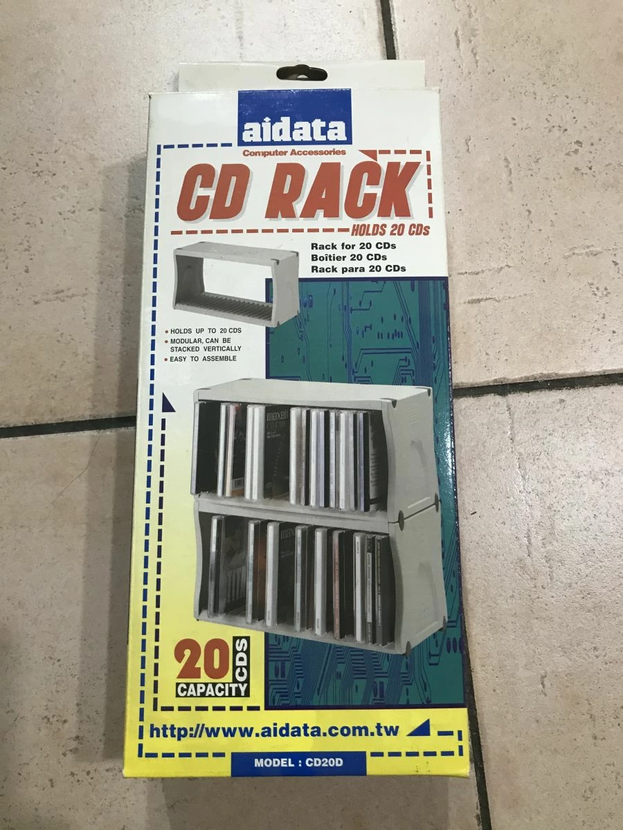 Ραφιέρα αποθήκευσης για 20 CD-DVD με το κουτί τους, της εταιρείας AIDATA. Καινούργιο, στη συσκευασία του. Μπορείτε να συνδυάσετε τη χρήση περισσοτέρων από ένα γιατί είναι κατασκευασμένα με τέτοιο τρόπο ώστε να “φωλιάζουν” το ένα επάνω στο άλλο. Έρχεται στη συσκευασία του και έχει τις οδηγίες για τη συναρμολόγησή του.