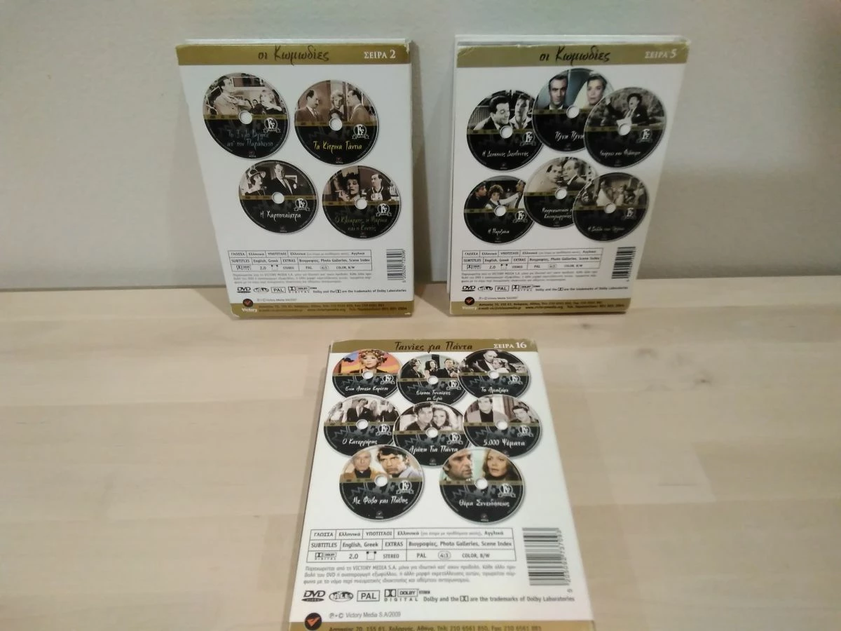 Συλλεκτικές και αυθεντικές κασετίνες ( Κωμωδία σειρά 2 λείπουν : Τα κίτρινα γάντια ) Κωμωδία σειρά 5 ( γεμάτο ), Ταινίες για πάντα σειρά 16 λείπουν : 20 γυναίκες και εγώ, το αμαξάκι, θέμα συνειδήσεως, Με φόβο και πάθος ) ( γεμίζω με άλλες ταινίες ίδιων έργων )