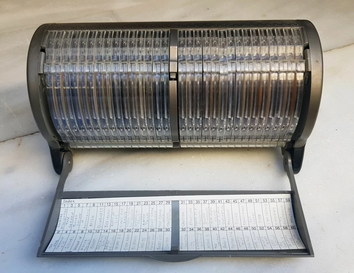 Σιντιέρα με θέσεις φύλαξης 60 σιντί. Υπάρχουν τρείς, παραλαβή από Χολαργό
