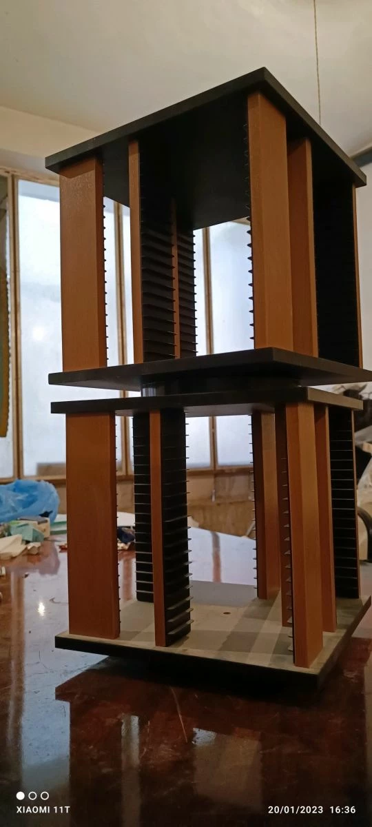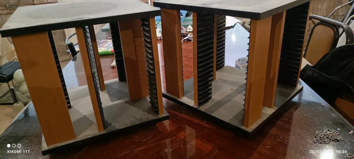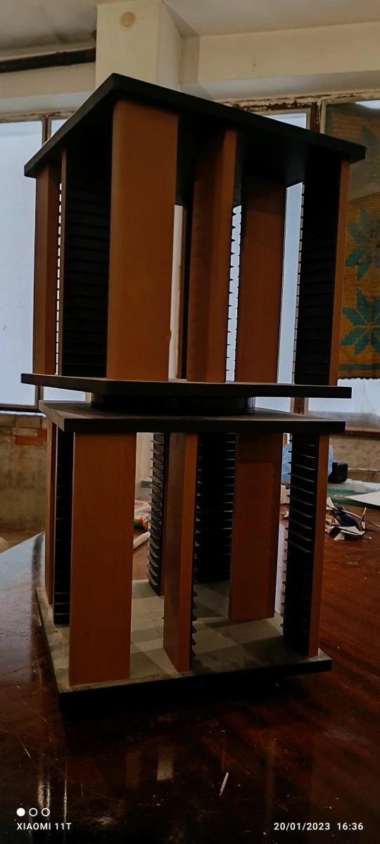 θήκες CD. Μπορεί να τοποθετηθεί η μία πάνω στην άλλη και να περιστρέφεται,χάρη στον μηχανισμό που διαθέτουν στο κάτω μέρος τους. 2 τχμ
