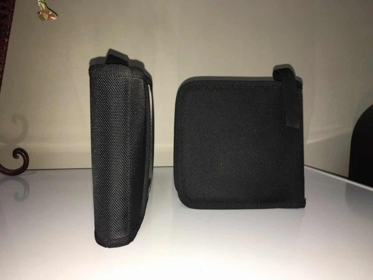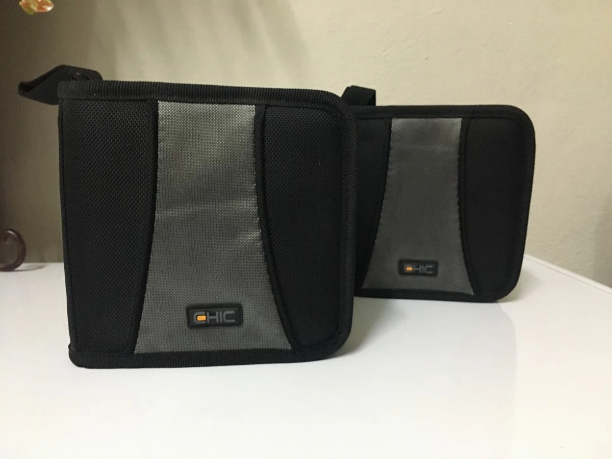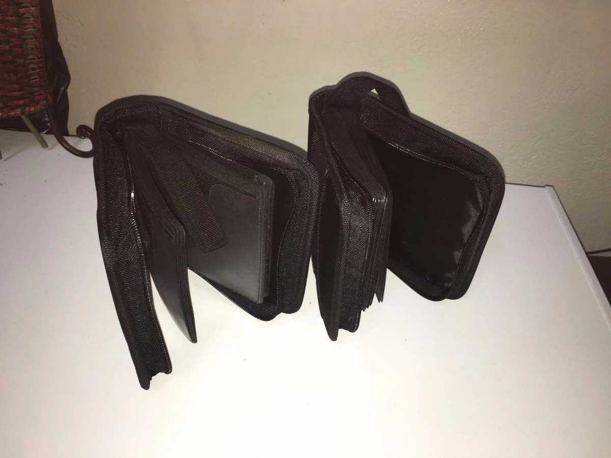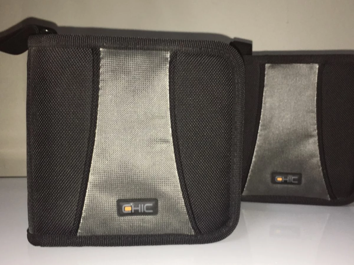 Δύο φασμάτινες θήκες για CD ή DVD με φερομυάρ και χερούλι, 32 θέσεων η κάθε μια.