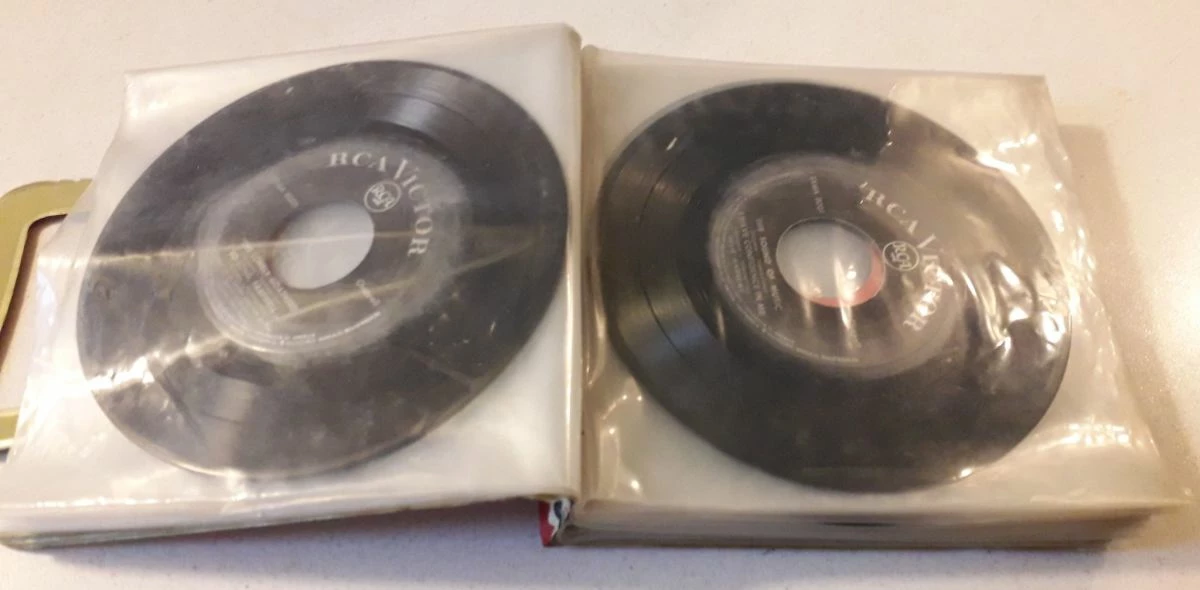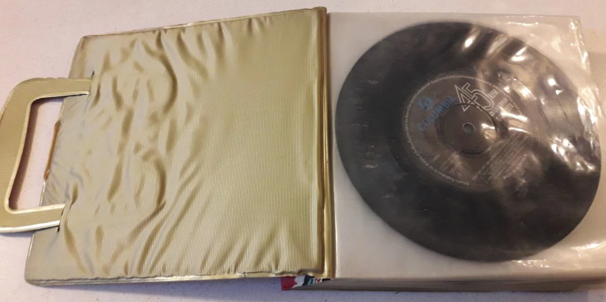 Retro θήκη μεταφοράς για 20 δίσκους βινιλίου μικρούς της δεκαετίας του ’60.