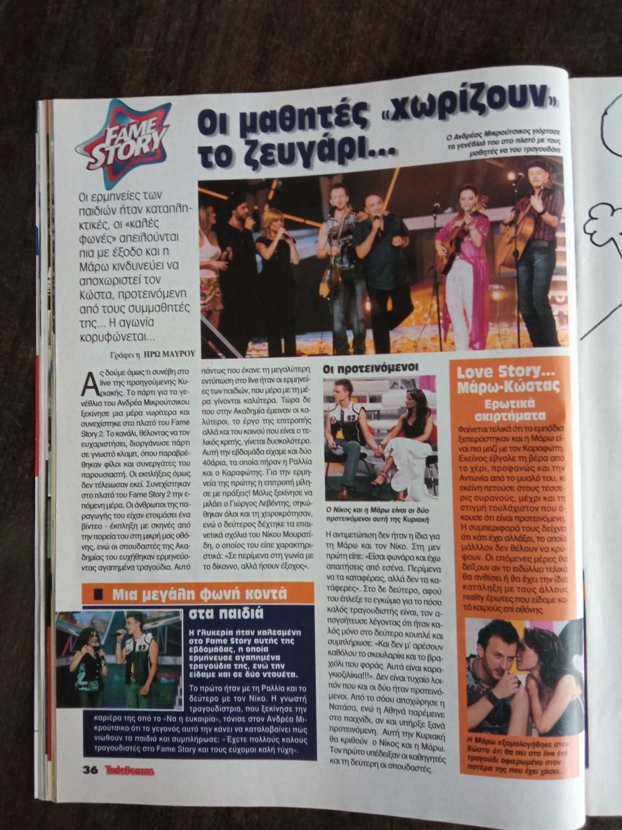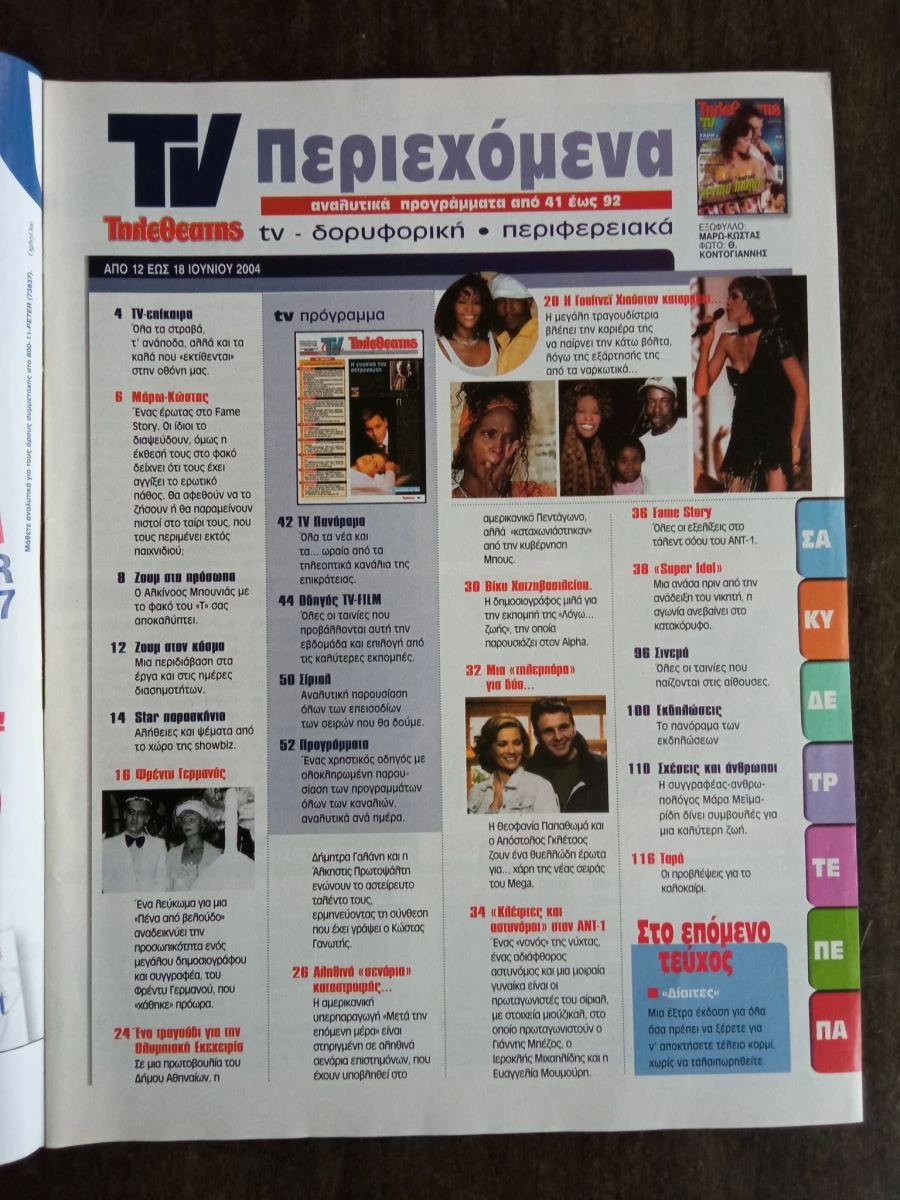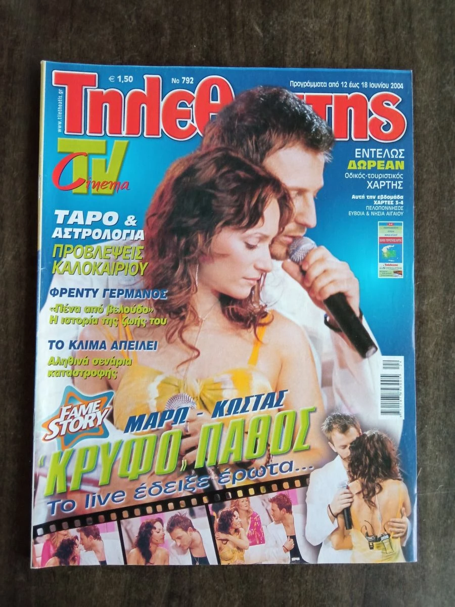 Τηλεθεατής Τεύχος 792 έτος 2004 .Ενα ολοκαίνουριο περιοδικό με αφιαίρωμα στους* πρωταγωνηστές * του FAME STORY που αυτοί και μόνο καθήλωναν τους τηλεθεατές .Πρόκειται για τον ΚΩΣΤΑ ΚΑΡΑΦΩΤΗ & την ΜΑΡΩ ΛΥΤΡΑ .