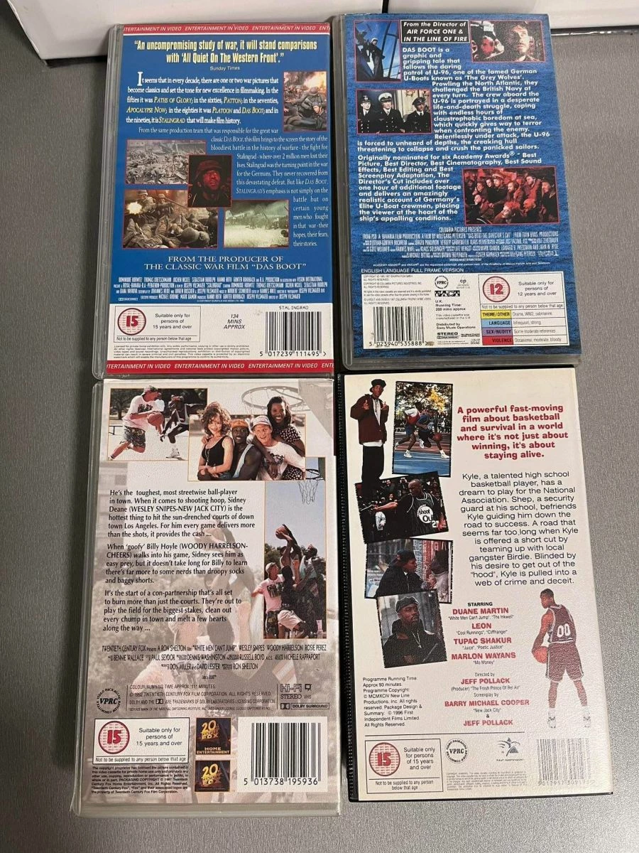 VHS – Stalingrad Das Boot / Above the Rim / White Men can’t jump Βιντεοκασσέττες στα Αγγλικά – Χωρίς Υπότιτλους